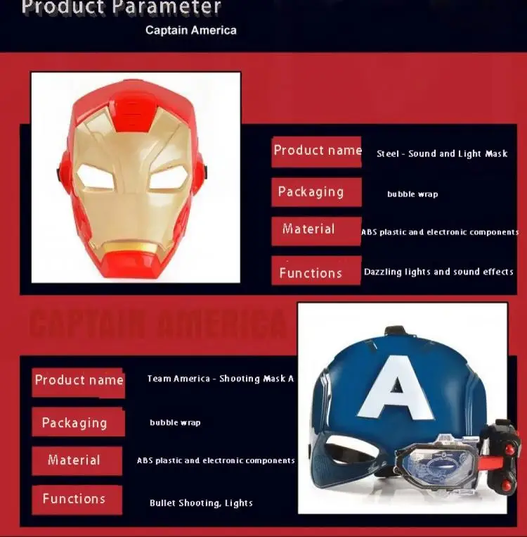 Be the first to review “Iron Man Captain America Helmet Cosplay Figure Luminous Mask Creative Soft Bullets Launcher Toys Personalized Prop Kids Gift” Cancel reply