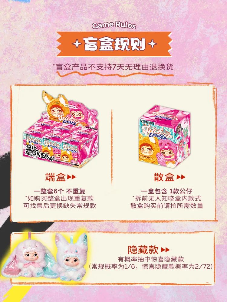 Be the first to review “Wakuku V2 Blind Box Fox & Bunny Trick Or Treat Series Vinyl Doll Suprise Bag Keychain Trendy Toys Mystery Box Customized Gifts” Cancel reply